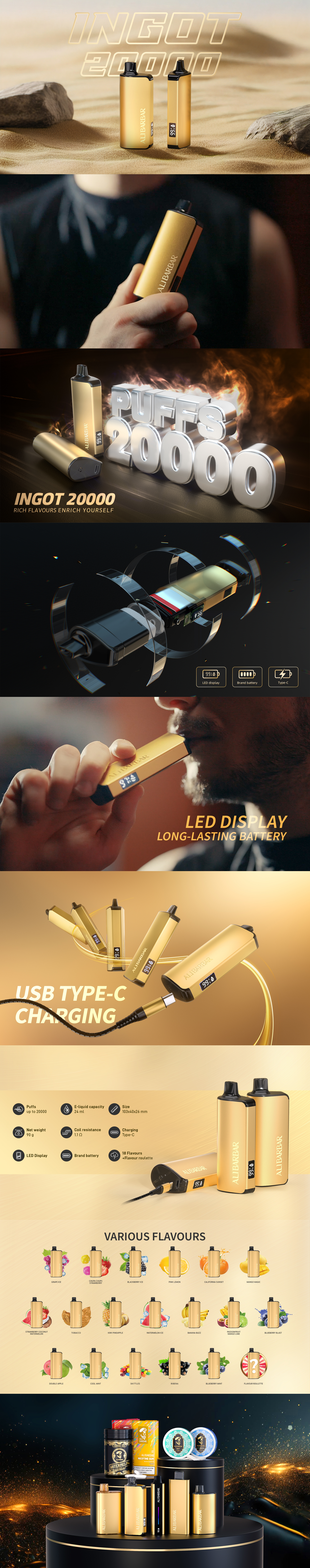 Alibarbar Ingot 20000 DisposableVape – 18 Flavors + Mystery Flavors